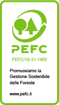 Il sistema PEFC riconosce le aziende che operano secondo principi di gestione forestale responsabile, garantendo che le materie prime siano ottenute nel pieno rispetto dell’ambiente, dei lavoratori e delle economie locali.